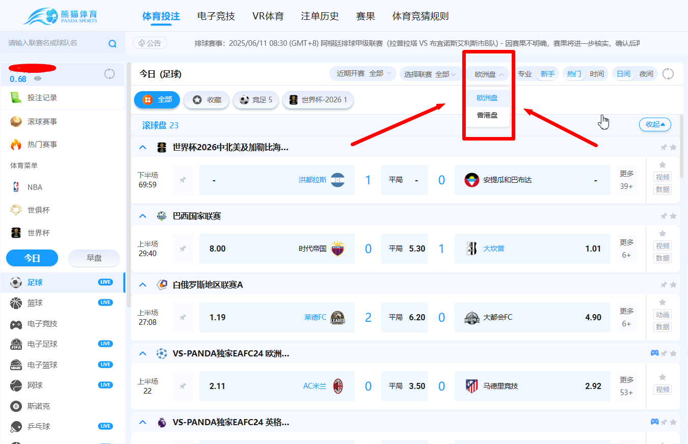 1.举例:国米 VS 拜仁 ,投注“大球”,赔率:-0.88 (扣款88)